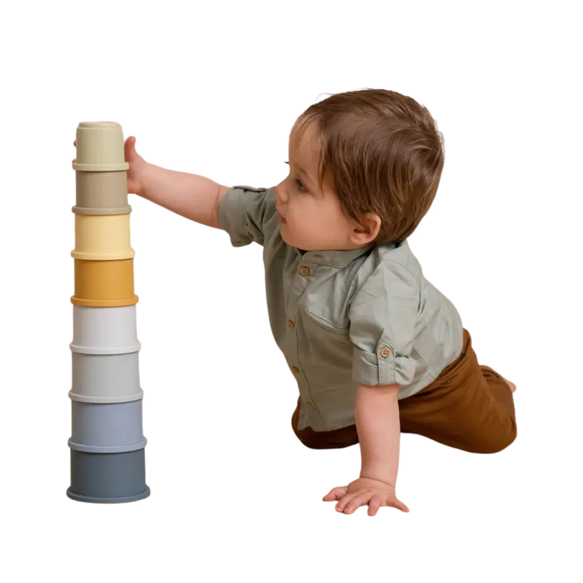 Nos encantan sus tonos azules y arena, suaves y relajantes, que combinan con cualquier habitación infantil. Cada vaso tiene un nĆŗmero en la parte superior, ideal para introducir el conteo de forma natural mientras juega. AdemĆ”s, el material es resistente y ligero, perfecto para que lo manipule sin esfuerzo, y al guardarse encajados ocupan poquĆsimo espacio, asĆ que se convierten en un aliado perfecto para viajar.