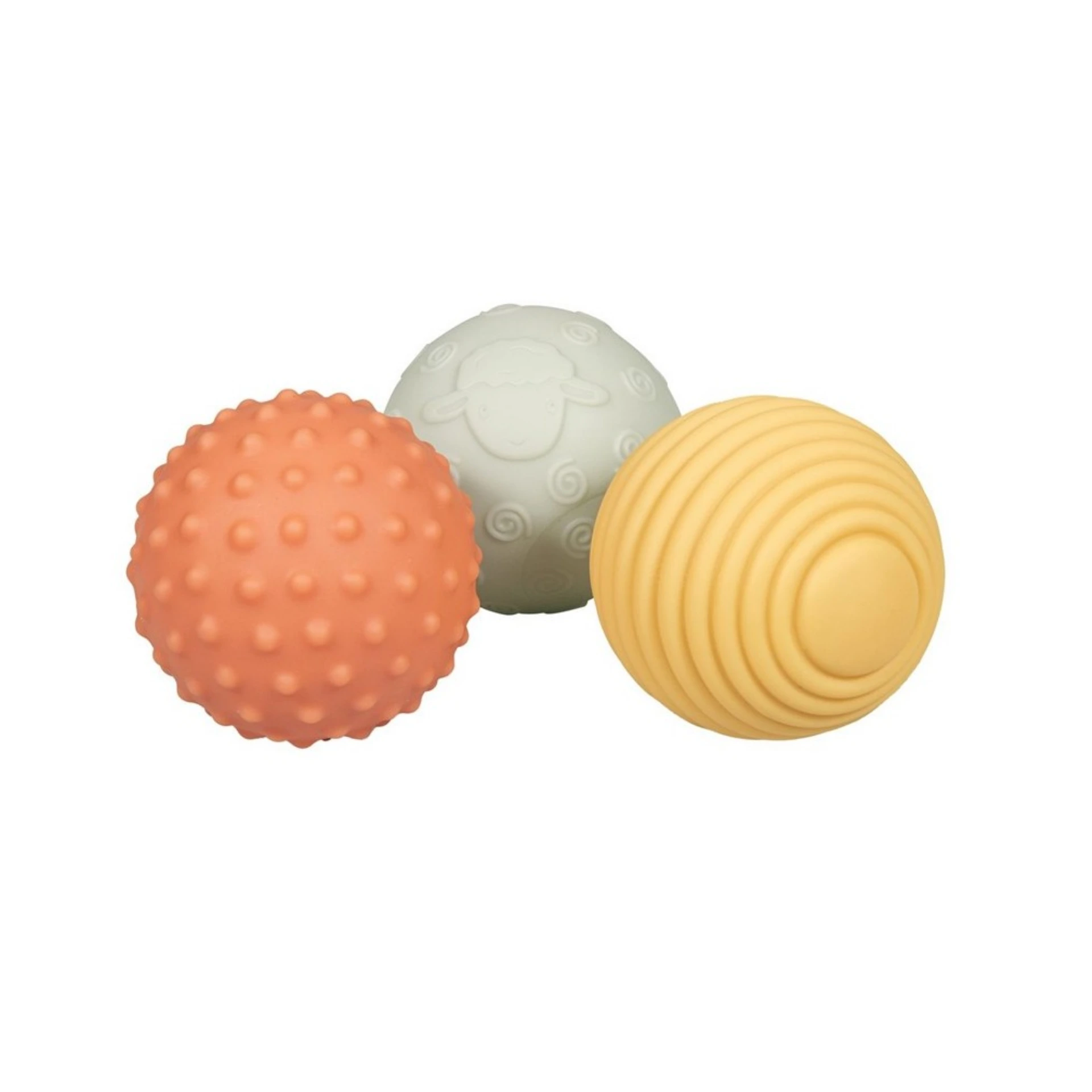 Incluye: Set de 3 pelotas sensoriales de colores pastel, cada una con textura diferente.
