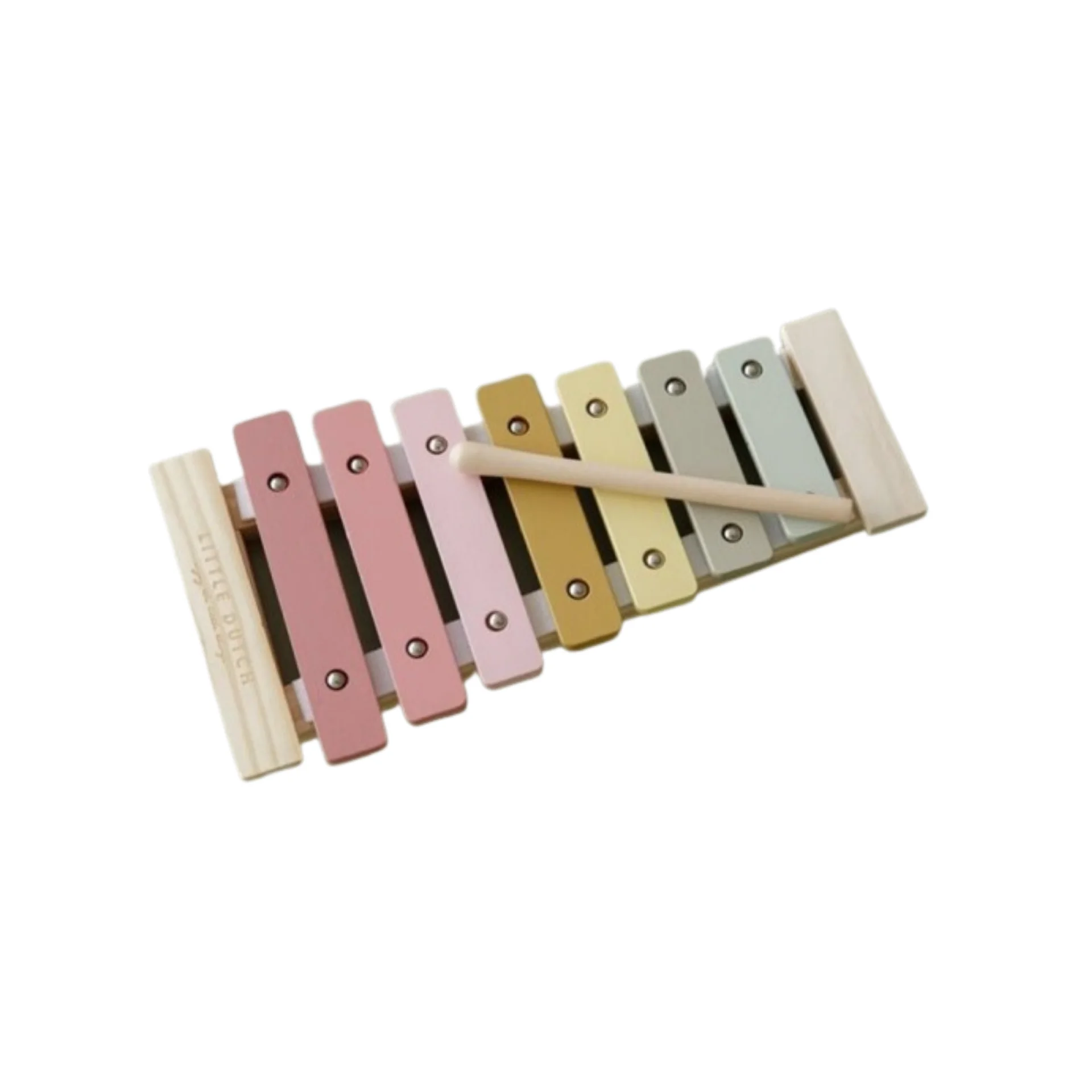 Nos encanta su diseño cuidado en tonos pastel y su base de madera estable, pensada para manos pequeñas. Las láminas metálicas responden con un sonido agradable, ideal para una primera toma de contacto con los instrumentos. El mazo es ligero y fácil de sujetar, de modo que el niño puede tocar sin cansarse y experimentar durante ratos largos. Es un juguete sencillo, resistente y muy decorativo, que queda precioso en cualquier habitación infantil.